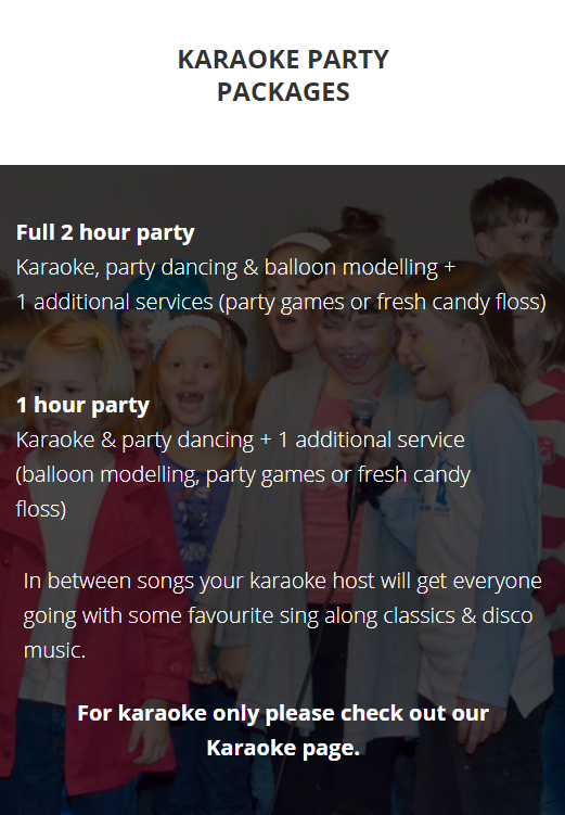 For something a little more special checkout our speciality parties, which include The Sounds of Disney Party, Karaoke Party & Dance Party